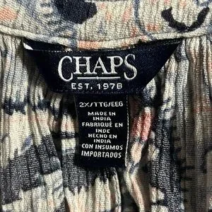 This elegant blouse from Chaps features a beautiful blue hue with ruffled details along the V-neckline, offering a touch of sophistication. The buttoned design and flowing fabric ensure a comfortable and stylish fit, perfect for any occasion.