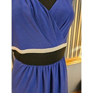 Chaps Blue Smooth Stretch Sleeveless Dress With Black & White Trim V-Neck Size L