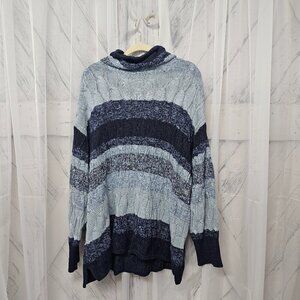 Chaps Blue Striped Cable Knit Mock Neck Sweater Size 2X