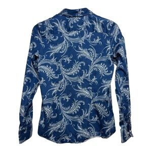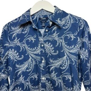 Chaps Blue White Paisley Floral No Iron Button Down Shirt Women’s Size S