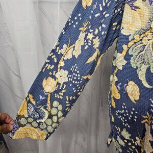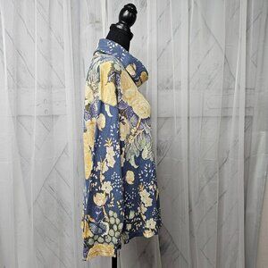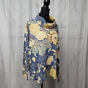 Chaps Blue Yellow Floral Cowl Neck Thermal Blouse Size M