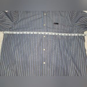 Experience timeless style with the Chaps Blue and White Casual Button Down Shirt, featuring a classic pinstripe pattern and a comfortable cotton blend fabric. This versatile shirt is perfect for any casual occasion, offering a sophisticated look with its button-down collar and long sleeves.
