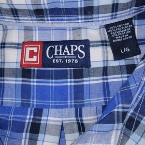 This Chaps shirt features a classic blue and white plaid pattern, perfect for a casual look. Made from lightweight cotton, it offers comfort and style for everyday wear. The button-down design and long sleeves make it a versatile addition to any wardrobe.