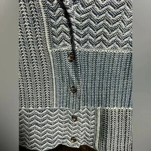 Chaps Blue and White Knit Button Front Shawl Collar Sweater Vest, Size Large