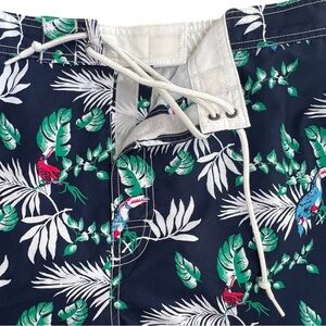 Navy blue XL Polyester Boardshort Swimwear tropical birds and palms trunks by Chaps