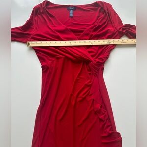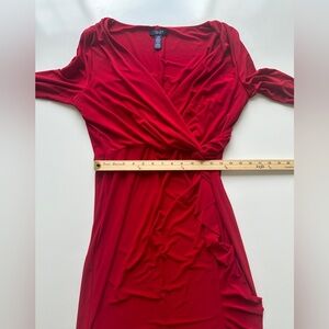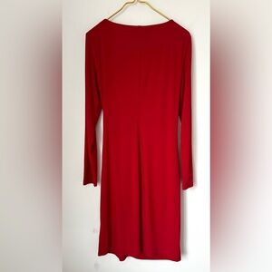 Chaps Bold Red Long Sleeve Stretch Fitted V-Neck Wrap Style Dress Women’s Large