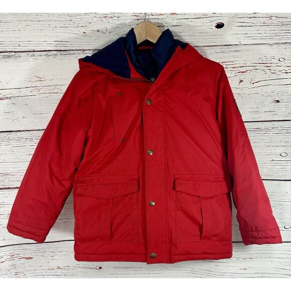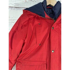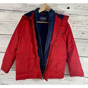 Chaps Boys Hooded Winter Jacket Medium 10/12 Red Blue Pockets Warm Zipper READ