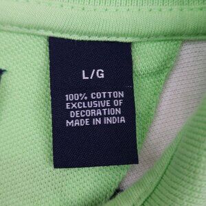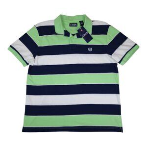 Chaps Boys Large Striped Polo Shirt Key Lime & Navy 100% Cotton