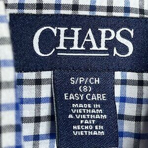 Chaps Boys Long Sleeve Plaid Button Down Shirt Kids Size 8 Blue White Check