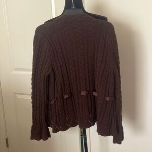 Chaps Brown Chunky 100% Cotton Cardigan Sweater with Ribbon Size XL