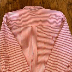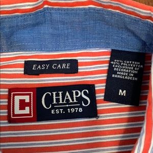 Chaps Easy Care striped button down. Orange, blue and white. Easy care and doesn’t need ironed. Great condition.