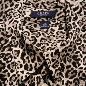 Chaps animal print button down shirt. See pictures for normal wear. Smoke and pet free home. EUC