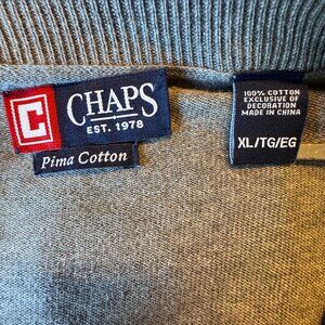Chaps Button Front Cardigan Mens XL Heather Gray Pima Cotton Grandpa Academia