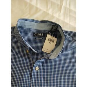 New Chaps Button Shirt Men's XXL Blue Checkered Short Sleeve Casual Summer