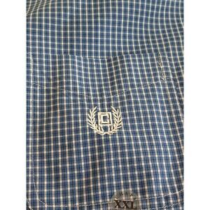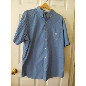 Chaps Button Shirt Men's XXL Blue Checkered Short Sleeve Casual Embroidered logo