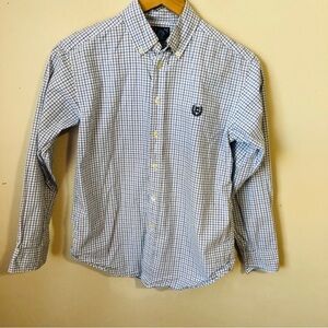 Chaps Button Up Embroidered Logo Boys Shirt. Excellent preowned condition. Size medium - 10/12