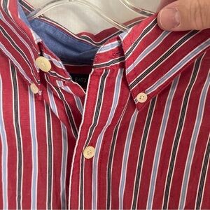 Chaps Button Up Shirt Mens Large Long Sleeve Red Blue Stripe Cotton Casual. It has so much wear left in it.