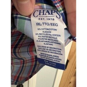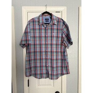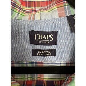 Chaps Button Up Shirt Mens Size XXL Plaid Easy Care Stretch Short Sleeve Cotton