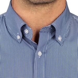 Chaps Men's Button-Down Dress Shirt, Blue Mini Check Pattern, Large 16-16.5, 32/33, NWT