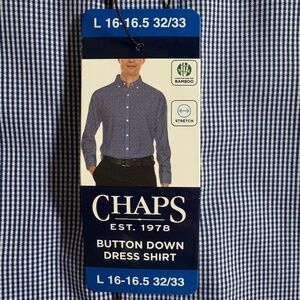Chaps Button-Down Dress Shirt, Blue Mini Check Pattern, Large 16-16.5, 32/33 NWT