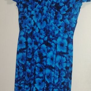 Chaps By Ralph Lauren Floral Crossover Surplice Dress-Blue Moc Wrap Jersey
