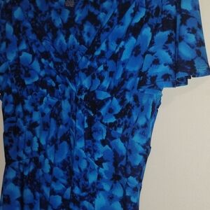 Chaps By Ralph Lauren Floral Crossover Surplice Dress-Blue Moc Wrap Jersey