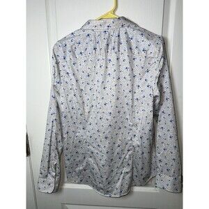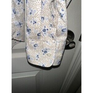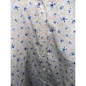 Chaps By Ralph Lauren Women's Shirt Button Up White Blue Floral Polka Dot Sz L