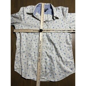 Elevate your wardrobe with this stunning white with blue floral and tan polka dot shirt from Chaps by Ralph Lauren. The classic fitted sleeve and collared neckline add a touch of elegance to any occasion. Whether it's for travel, wedding, party/cocktail, casual, formal, workwear, or business, this versatile shirt is perfect for all seasons.