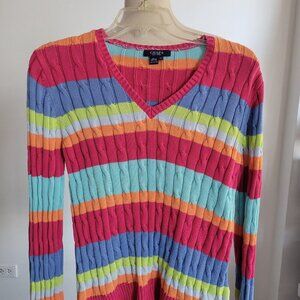 Chaps Cable Knit Striped Pastel Rainbow Cotton Sweater (Size: Large)