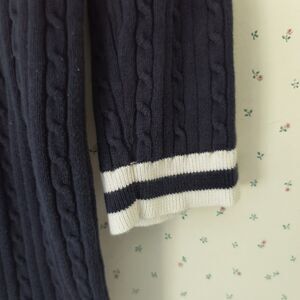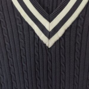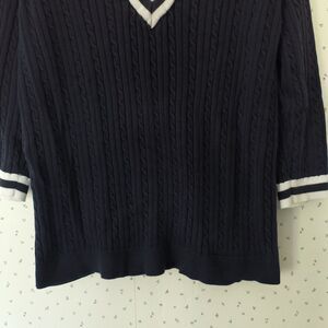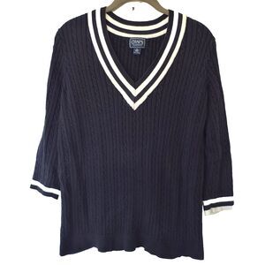 Chaps Cable Knit Sweater Womens 1X Navy White Trim Cotton Tennis Ralph Lauren