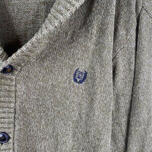 Chaps Cardigan Sweater Men's Green Sz XXL Shawl Collar Crest Grandpa Oversized