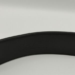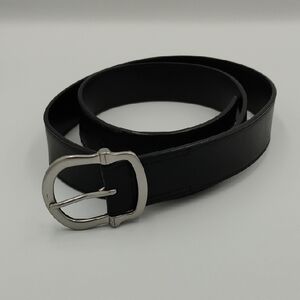 Elegant black belt with a sleek silver-tone buckle. Ideal for versatile styling. Mild signs of wear on the buckle and belt as shown in listing photos