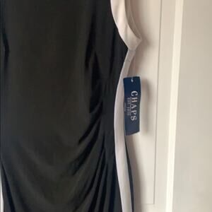 NEW! Chaps Black Sheath Tank dress is so cool with white stripes on the bodice and down the sides. It is an easy-care Polyester/Elastane fabric that is comfortable, flattering and does not wrinkle. The dress is fully lined.