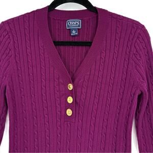 Chaps Classics Cable Knit Ribbed V-Neck Sweater Gold Buttons Size S