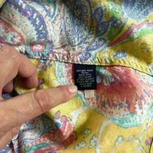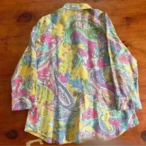 Chaps Classics Linen Blend Bright Paisley Button Up Blouse Women's Large