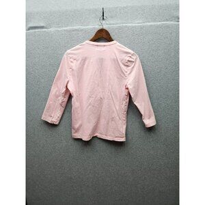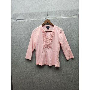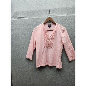 Chaps Classics Pink Womens 3/4 Sleeve Cotton Blouse With Embroidered Front Detai