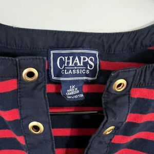 Chaps Classics Red and Navy Striped Short Sleeve Shirt 1X Grommet Lace Up Neck