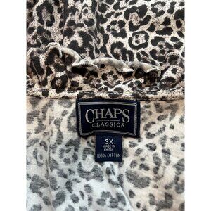 Chaps Classics Womens Leopard Print Ruffled Top Size 3X 100% Cotton Animal Soft