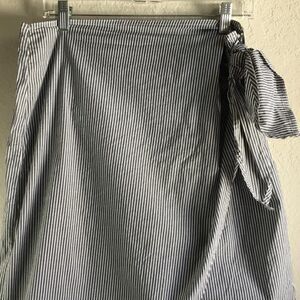 Chaps Coastal Grandma Cruise Nautical Beachy Summer Striped Wrap Skirt Size 12