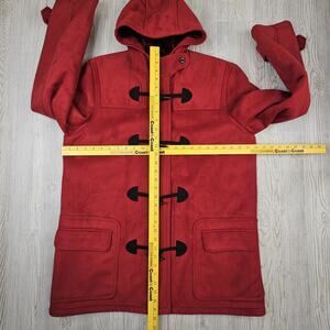 Chaps Duffel Coat Mens XL Red Faux Suede Toggle Button Hooded Jacket