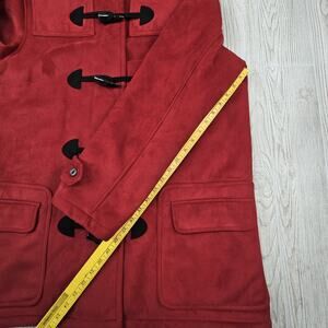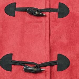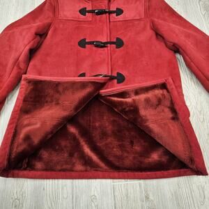 Chaps Coat Womens XL Red Faux Suede Toggle Button Hooded Lined Jacket