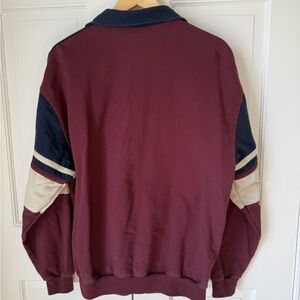 True vintage. Size large but fits like men’s medium. Chaps rugby shirt with a stylish colorblock design. Features navy, cream, and burgundy colors. Straight from your dad or grandpas closet. Excellent condition.