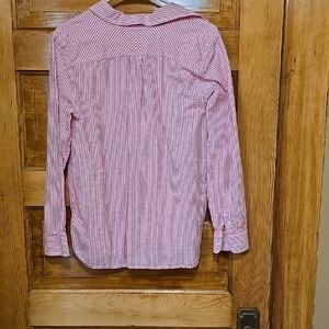 Stylish Chaps blouse with coral and white stripes. Perfect for casual wear.