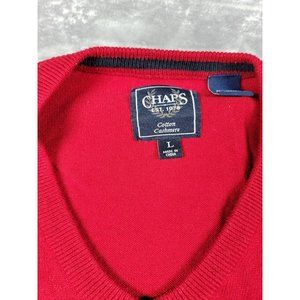 Chaps Cotton Cashmere Size Large Red Knit V neck Pullover Sweater