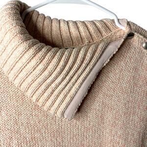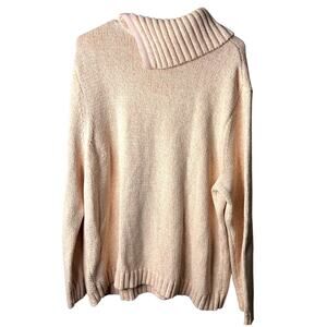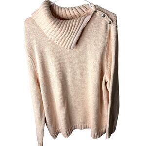 Chaps Cozy Funnel Neck Sweater Plus 3XL Pink Cream Button Shoulder Classic Style