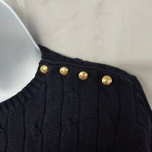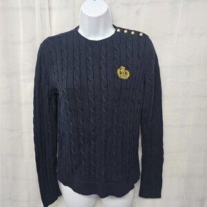 Chaps Crewneck Sweater Crest Navy Cable Knit Preppy Regency Money Cotton M