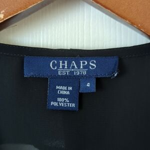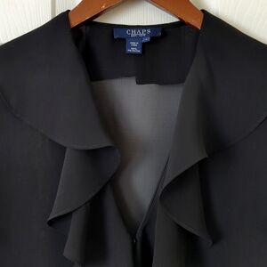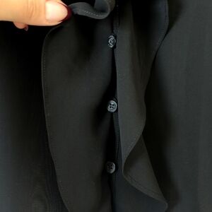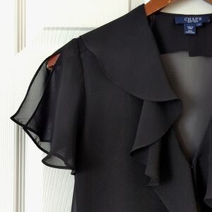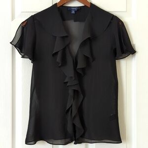 Chaps Dainty Sheer Chiffon Ruffled V-neck Flutter Sleeve Button Down Top Black 4