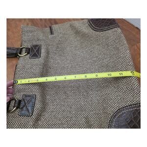 Chaps Dark Brown Herringbone Satchet Bag Purse Double Straps