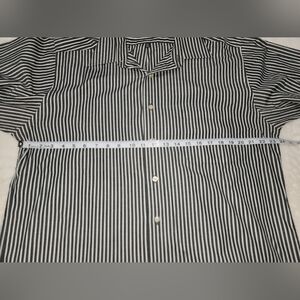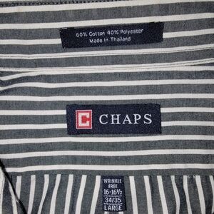 This Chaps shirt features a classic gray and white pinstripe pattern, offering a timeless look for casual occasions. Crafted from a comfortable woven fabric, it boasts a relaxed fit with long sleeves and a pointed collar, making it a versatile addition to any wardrobe.