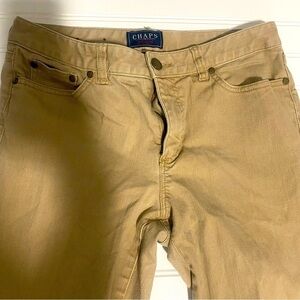 Chaps Denim Pants for Women Tan Color Size 6 bottom pant leg has a little fray